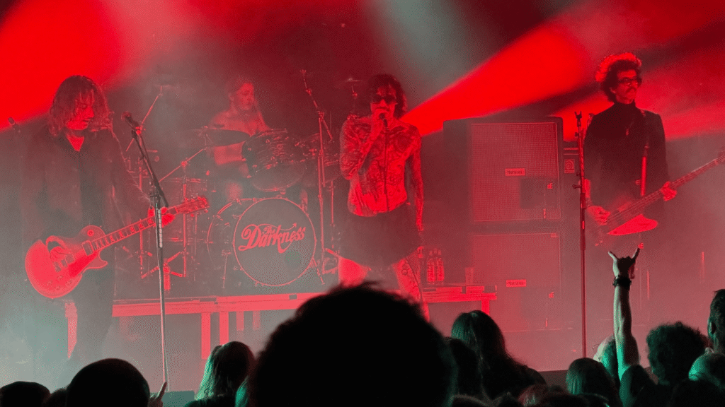 The Darkness startet mit „Rock and Roll Party Cowboys“ in den Abend und macht damit schon ab dem ersten Song klar: Party Pooper haben hier heute nichts verloren.